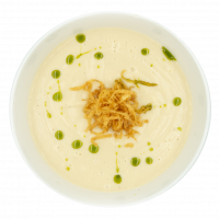 Aksamitny krem z zielonego groszku z groszkiem ptysiowym